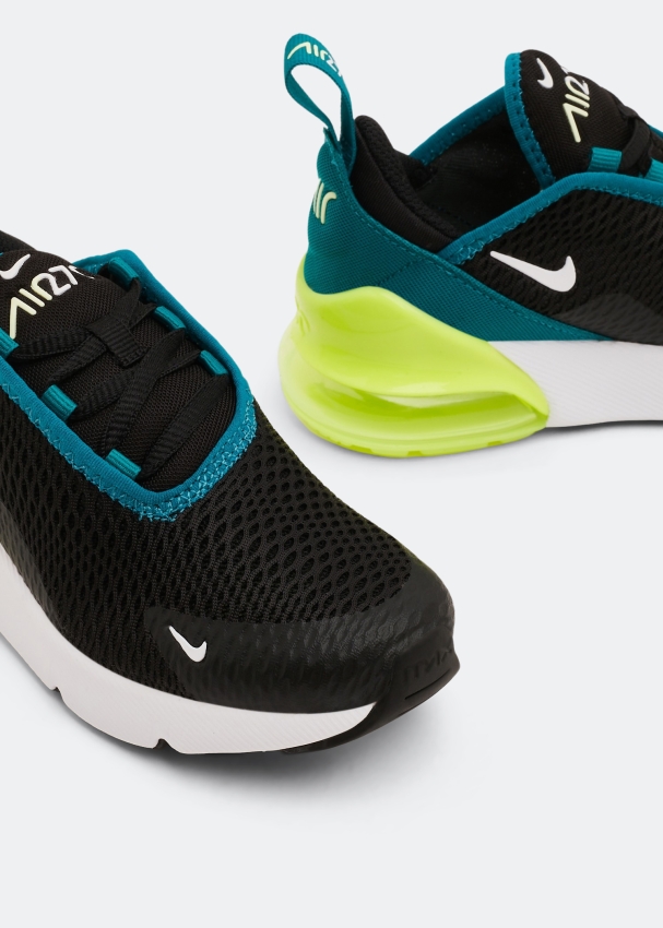 امنحوا صغيركم الراحة المثالية طوال اليوم مع هذا السنيكرز خفيف الوزن من نايك. يستند على وحدة "إير 270" ضخمة ويتميز بجزء علوي منسوج ومسامي، نعل خارجي مطاطي للثبات، شريط سحب لارتداء وخلع الحذاء بسهولة وتوسيد رغوي شفاف.
