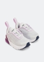 امنحوا طفلكم الراحة المثالية طوال اليوم مع هذا السنيكرز خفيف الوزن من نايك. يستند على وحدة "إير 270" ضخمة ويتميز بجزء علوي منسوج ومسامي، نعل خارجي مطاطي للثبات، شريط سحب لارتداء وخلع الحذاء بسهولة وتوسيد رغوي شفاف.