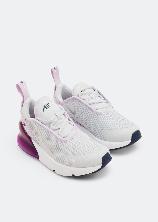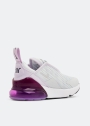 امنحوا فتاتكم الراحة المثالية طوال اليوم مع هذا السنيكرز خفيف الوزن من نايك. يستند على وحدة "إير 270" ضخمة ويتميز بجزء علوي من نسيج مسامي، نعل خارجي مطاطي للثبات، شريط سحب لارتداء وخلع الحذاء بسهولة وتوسيد رغوي شفاف.