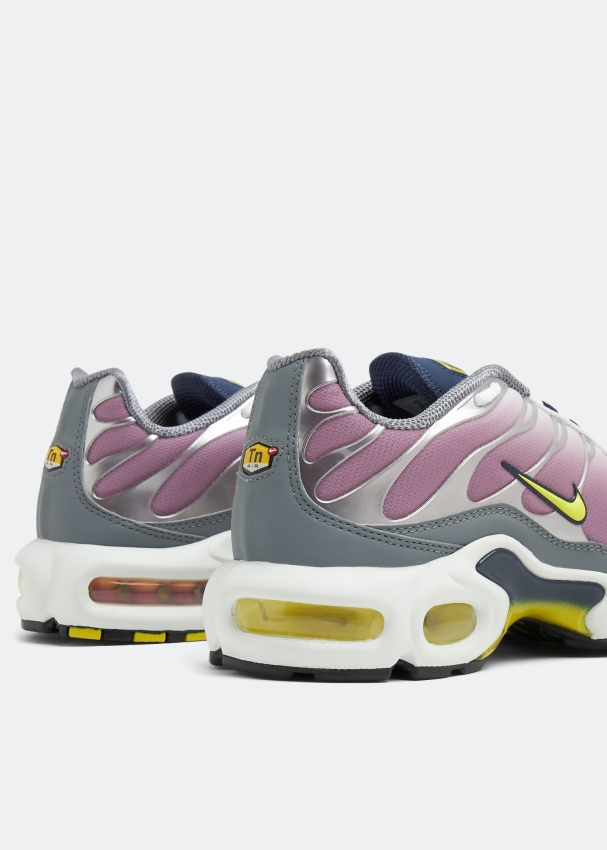 أضيفي لمسة جريئة إلى إطلالتكِ المستوحاة من أزياء الشارع مع سنيكرز إير ماكس بلاس أو جي فايوليت داست من نايك. يتميز بجزء علوي من النسيج الشبكي باللون الأرجواني المتدرج مع طبقة واقية وكعب من الجلد باللون الرمادي وتوسيد بتقنية "إير" ليمنحكِ الثبات الرائع والراحة المثالية.