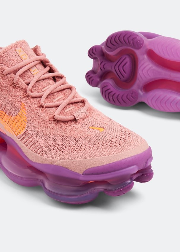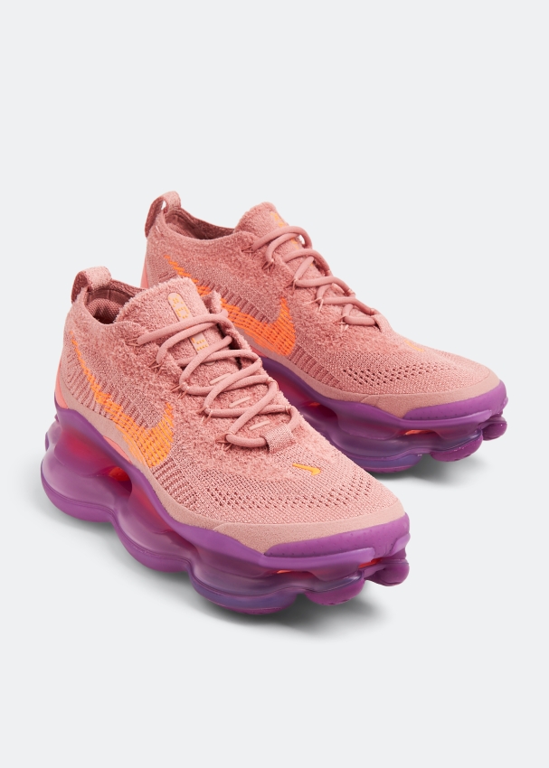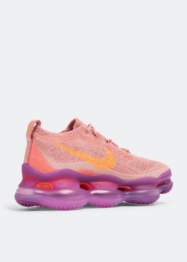 يتميز سنيكرز إير ماكس سكوربيون ميوتيد بينك من نايك بتصميم باللونين البرتقالي والوردي مع شعار العلامة بلون متباين، جزء علوي من نسيج مسامي، شريط سحب ونعل خارجي شفاف بتصميم ضخم وعريض ليمنحكِ الراحة والدعم.